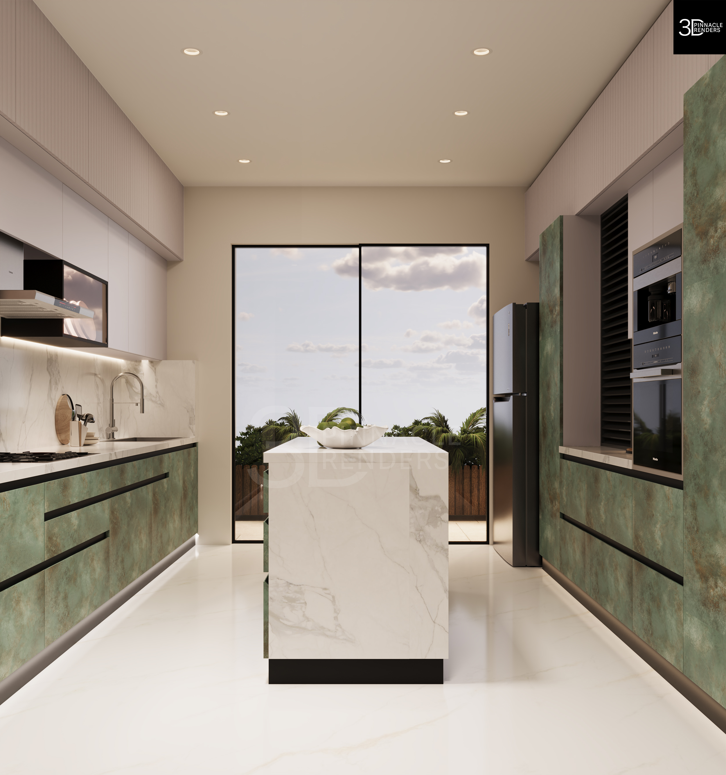 Detailed 3D models and photorealistic renders are developed, with careful attention to materials, textures, lighting, and spatial accuracy.
